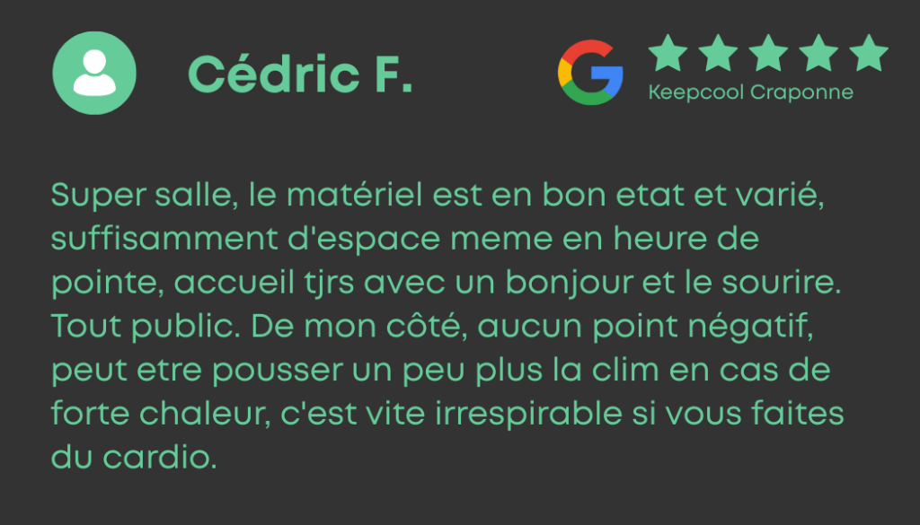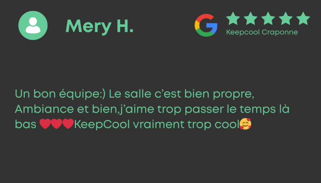*Offre valable jusqu’au 31 Octobre 2025 dans tous les clubs Keepcool et sur keepcool.fr, pour une souscription avec engagement de 12 mois en paiement immédiat ou en prélèvements tous les mois. 29,99€ / mois pendant 3 mois puis 9 mois à 34,99€ sur la formule PRIME. +5 euros par mois selon la zone géographique. Hors frais de Starter pack d’un montant de 39€ à régler à l’inscription ou 89€ si option Boost pour deux rdv coaching inclus. Voir conditions détaillées et autres offres en club et sur keepcool.fr. Offre réservée aux personnes physiques, non échangeable, non remboursable, même partiellement, non cumulable avec toute opération en cours. Keepcool est une marque déposée DG Développement 533 988 580 R.C.S. AIX-EN-PROVENCE.